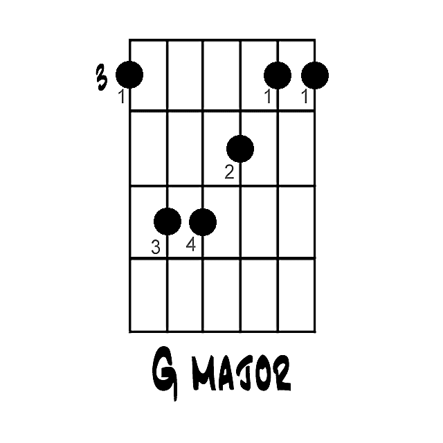 - Place your third finger on the 3rd fret of the B string (2nd string).