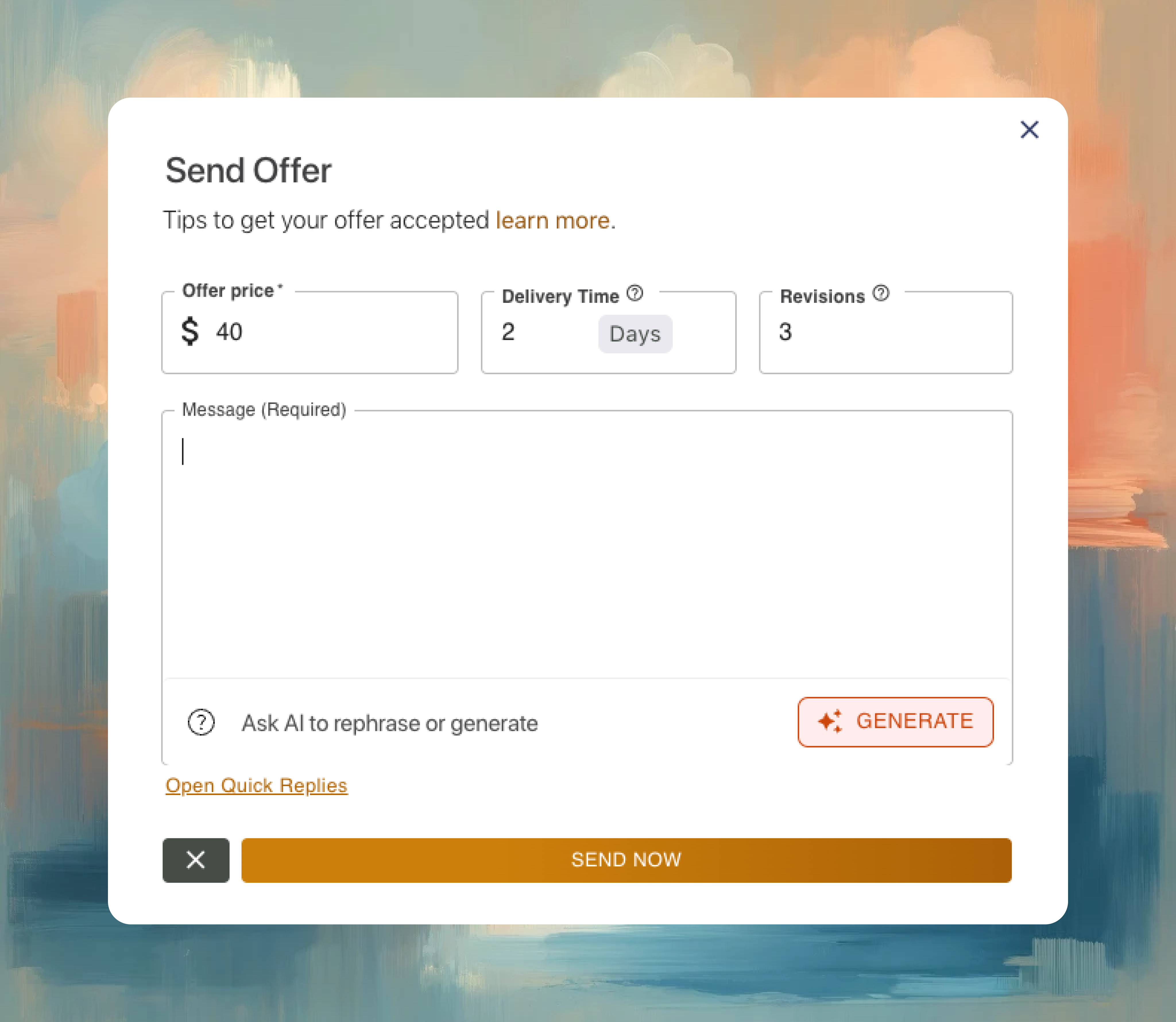We’re excited to introduce our new beta feature that utilizes Cohere to generate AI messages for your offers, boosting conversion rates significantly! These AI-generated messages are tailored based on user history and previous messages, customizable in various languages, and include specific buyer details. Enhance your communication, save time, and make your offers stand out with this innovative tool. 🌐 Try it now and see your acceptance rates soar