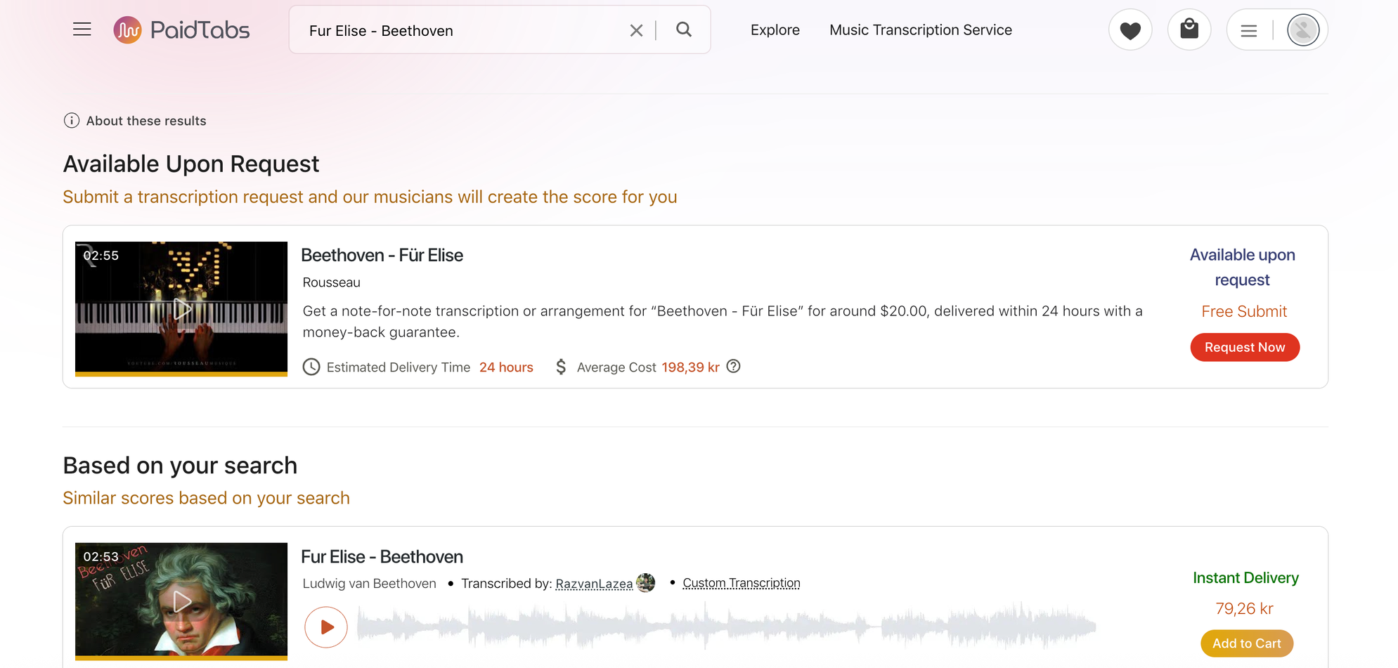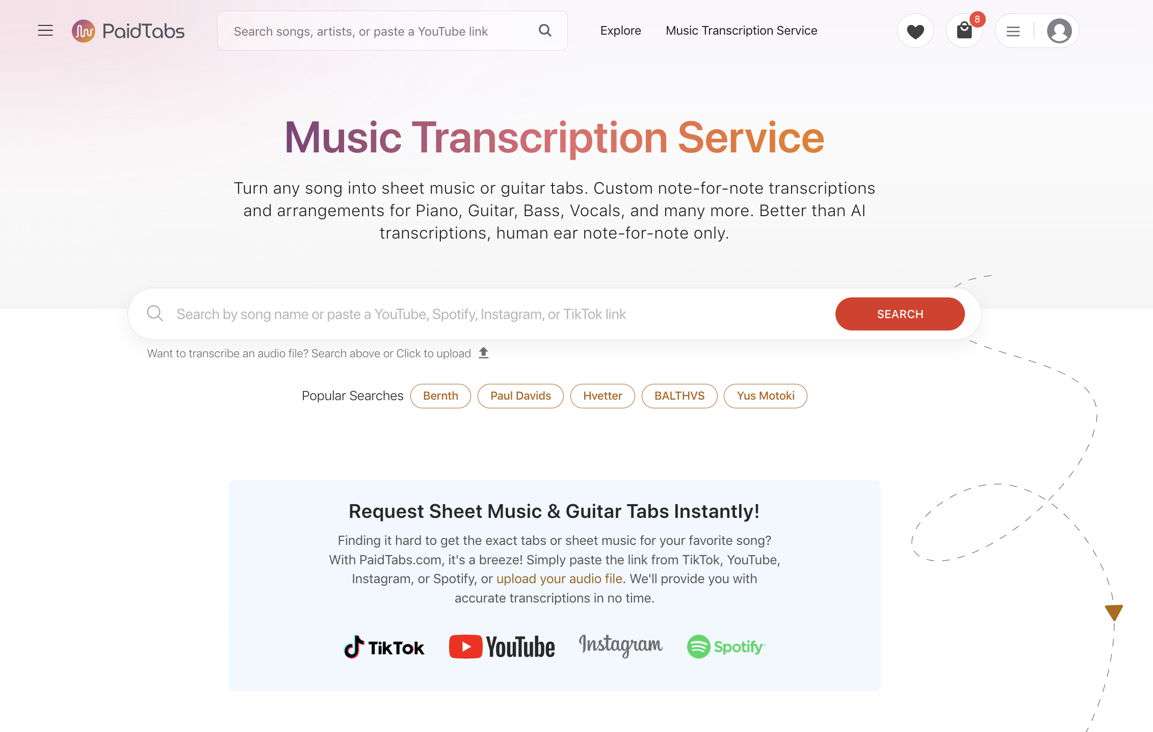 PaidTabs' customers are usually professional musicians who don't have time to transcribe their own music, or artists who want to have their original work transcribed and sold on PaidTabs. We also help industry leaders create professional music scores.