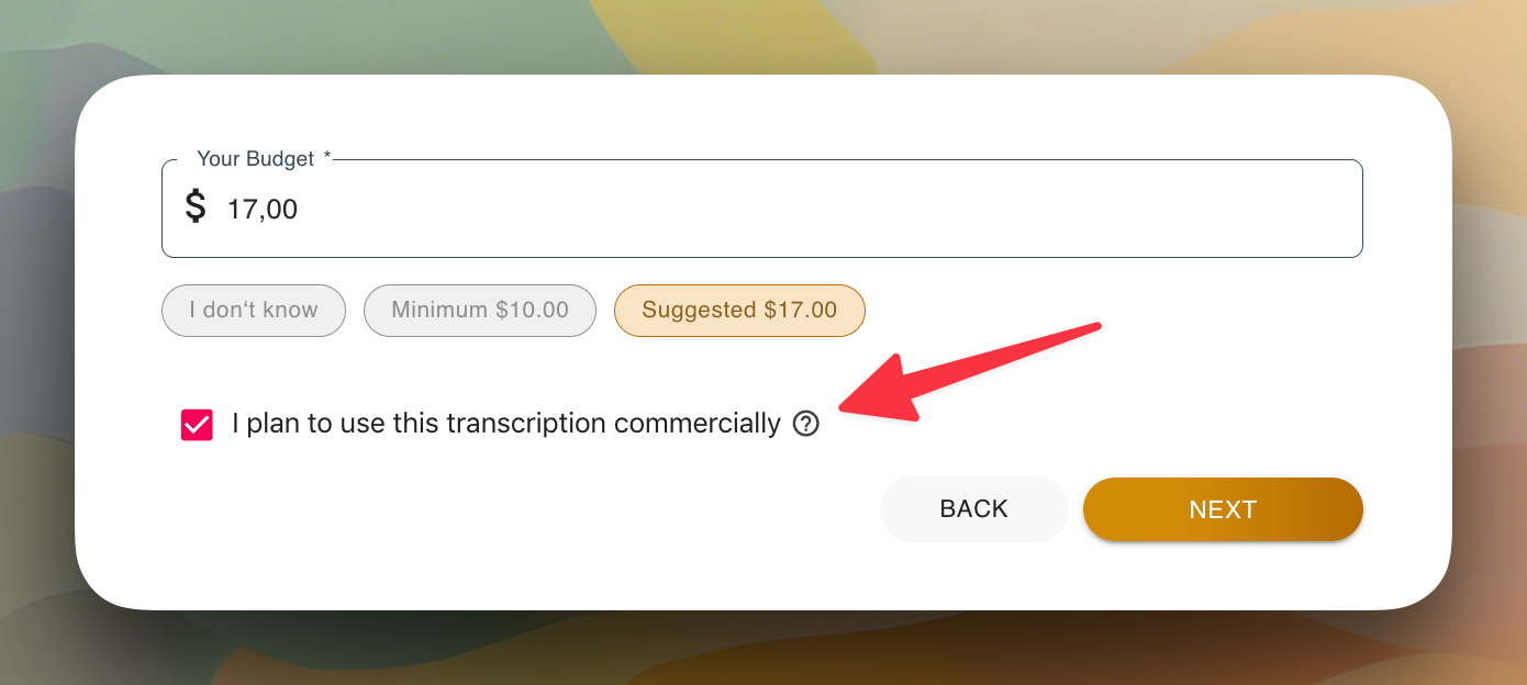 If you plan to use the transcription for commercial purposes, make sure to check the Commercial Use box. By selecting this option, you obtain full commercial rights to use, distribute, and sell the transcription. Without enabling this option, your usage is limited strictly to personal or educational purposes.