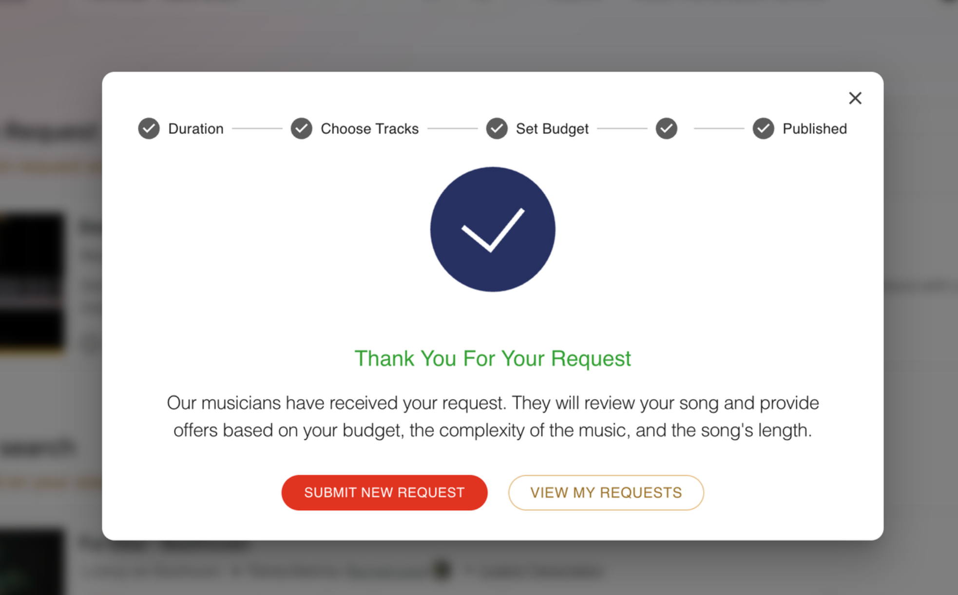 Once you publish your request, it appears on the musician dashboard. You’ll receive offers shortly after submission.